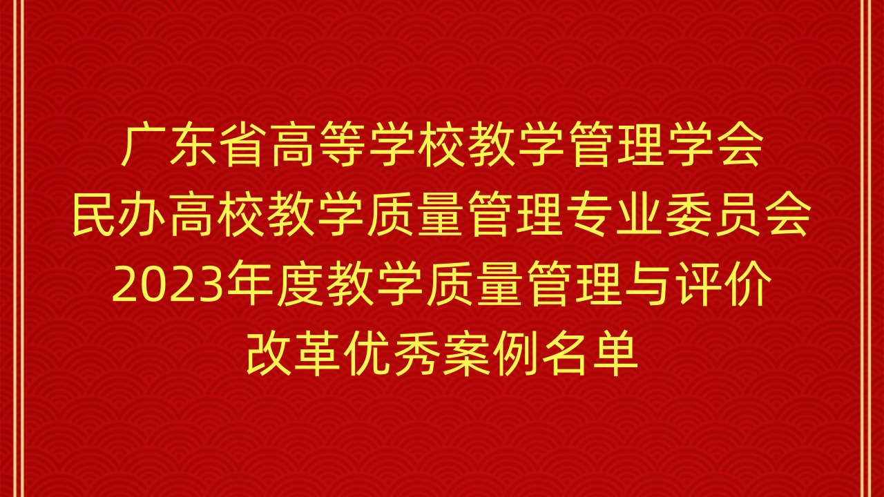 近日,经广东省高等学校教学管理学会民办高校教学质量管理专业委员会评审,3044永利集团官网“基于质量标准的'六位一体'质量保障体系构建”等5项案例获批2023年度教学质量管理与评价改革优秀案例。