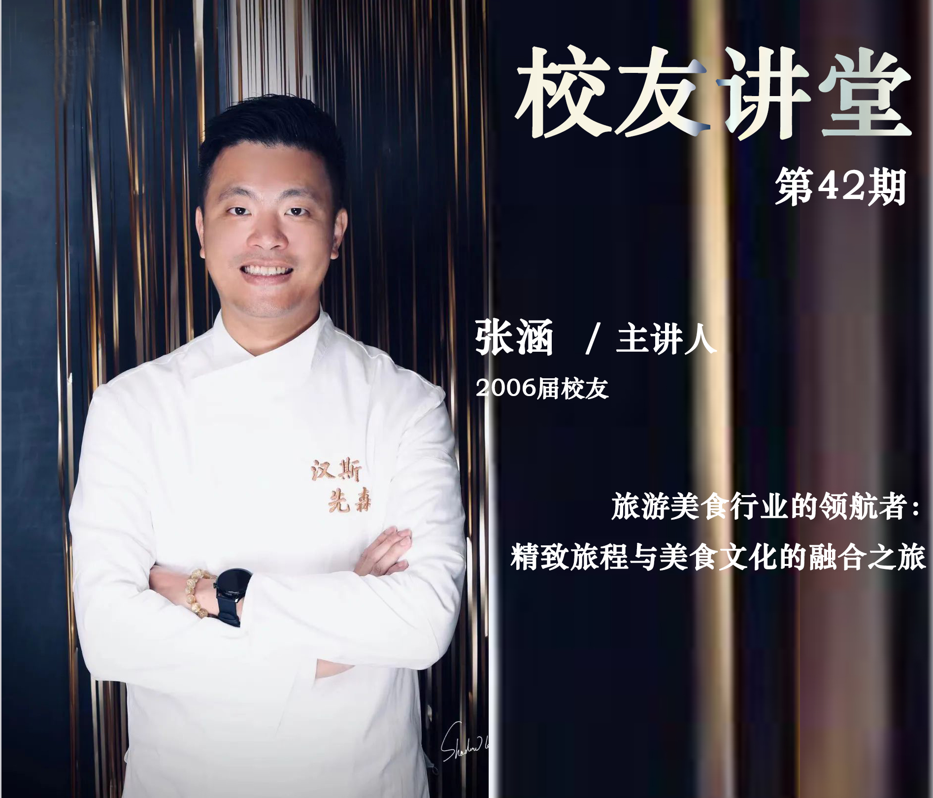 为了进一步加强校友与在校生之间的互动交流,发挥校友的榜样作用,激励在校生见贤思齐,汲取力量,校友办特此举办校友讲堂活动,邀请优秀校友分享自身奋斗历程,引导广商学子更好地就业与创业,校友会将于2024年4月11日(星期四)15:50,在八教204教室举办第41期校友讲堂,邀请2006届校友张涵以《旅游美食行业的领航者:精致旅程与美食文化的融合之旅》为主题进行分享。