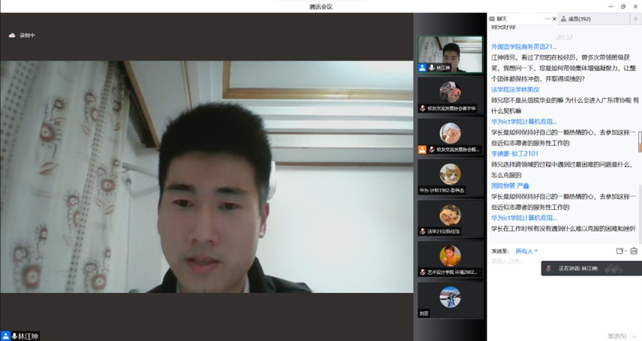为进一步加强校友与母校的联系,促进母校与校友之间的沟通,发挥校友在学校人才培养中的正向激励作用,广州商学院校友办邀请2019届林江绅校友在线上平台为母校作交流分享,引导和鼓励学生追寻自我目标,实现自我价值,于2022年4月19日晚上7:30在线上平台腾讯会议开展第十六期校友讲堂。