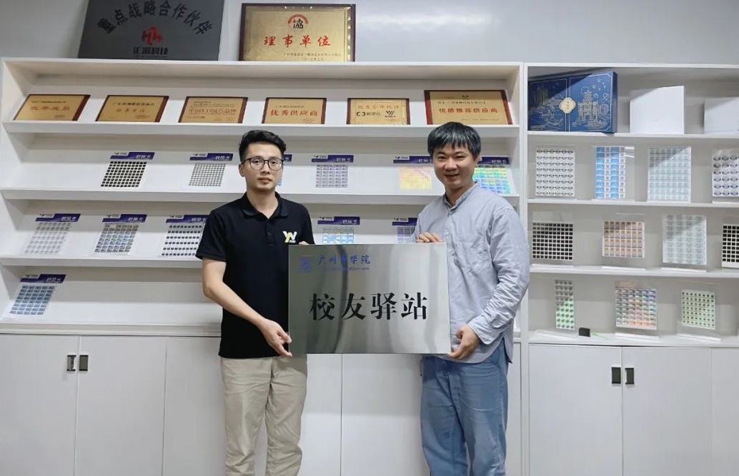 为进一步加强校友间的联系,为校友提供更加便捷的资源共享平台,为在校生创造更多实践锻炼机会,近日,学校校友会执行会长、校友办主任、品牌宣传部部长翁楚歆老师,校友办李华学老师,为2017届麦俊杰校友所在的广州汇米科技有限公司(以下简称汇米科技)授予“校友驿站”牌匾。