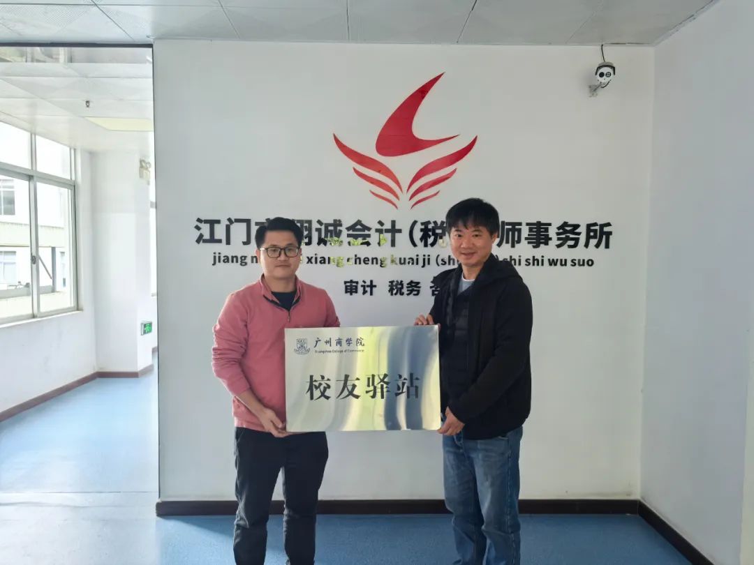 为进一步加强校友间的联系,为校友提供更加便捷的资源共享平台,为在校生创造更多实践锻炼机会,近日,学校校友会执行会长、校友办主任、品牌宣传部部长翁楚歆副教授,为2011届方贵准校友创办的江门市瑞鸿财税咨询有限公司(以下简称瑞鸿财税),授予“校友驿站”牌匾。