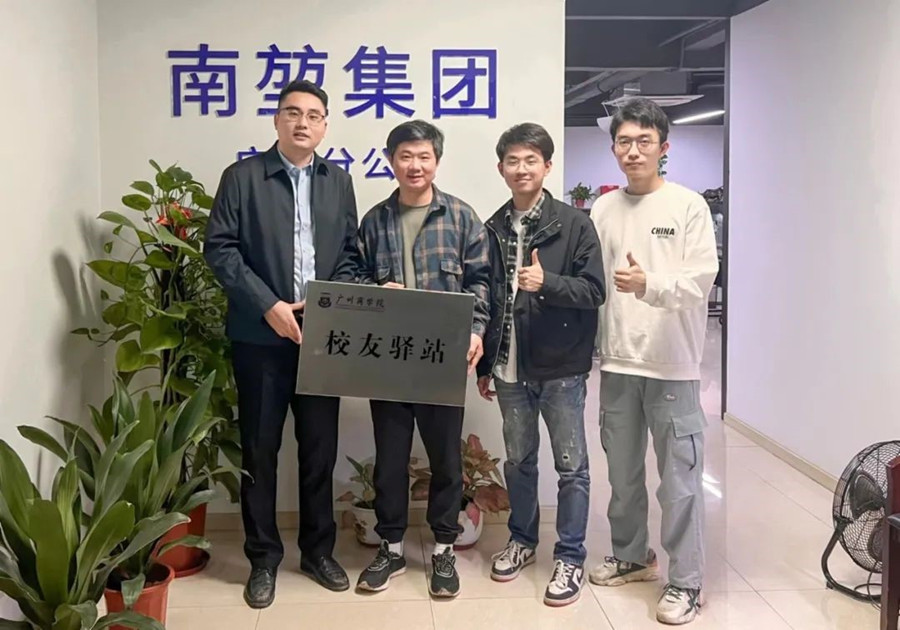 为更好地服务校友,促进校友企业之间合作发展,加强校友与母校之间的互动交流,为广大校友交流、学习提供一个温馨的场所。近日,校友会执行会长、校友办主任、宣传部部长翁楚歆,校友办吴键崇老师等一行人赴广州市白云区为南堃投资集团有限公司创始人、14届校友李嘉聪所在企业授予“校友驿站”牌匾。